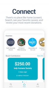 There’s no place like home. Search, see your favorite causes, and review your most recent donations, all from a single beautiful home screen view.