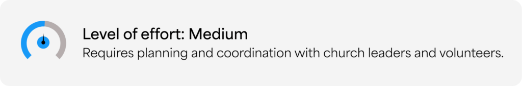 Establish a long-term partnership by sponsoring a local school, offering support through resources, volunteer efforts, or financial assistance. Start by identifying a local school in need of support and meet with administrators to determine how your church can help.