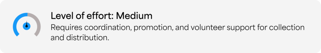 Collect essential school supplies and distribute them to students in need, ensuring every child starts the school year off right. Announce the drive during church services, in the church bulletin, and on social media.