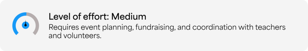 Promote the picnic through church networks and community bulletin boards to get the word out to local families. Consider hosting a Givelithon during the event, where attendees can make donations to fund resources and programs for students and teachers throughout the school year.