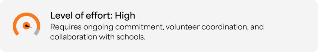 Implement ongoing initiatives to support the school’s needs. This could involve making regular donations of essential classroom supplies such as textbooks or computers or organizing volunteer programs to provide personalized support to students through tutoring and mentorship. You can even organize fundraising events to help the school raise funds for special programs or improvements they may not have the financial resources to support.