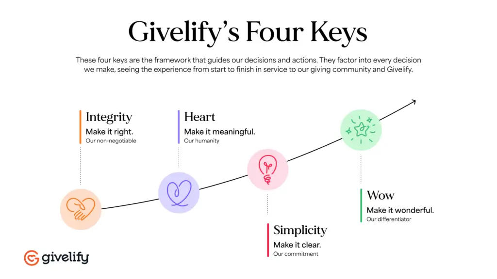 These principles reflect how Givelify values creativity and ingenuity as much as efficiency and profitability, fostering a culture of innovation.