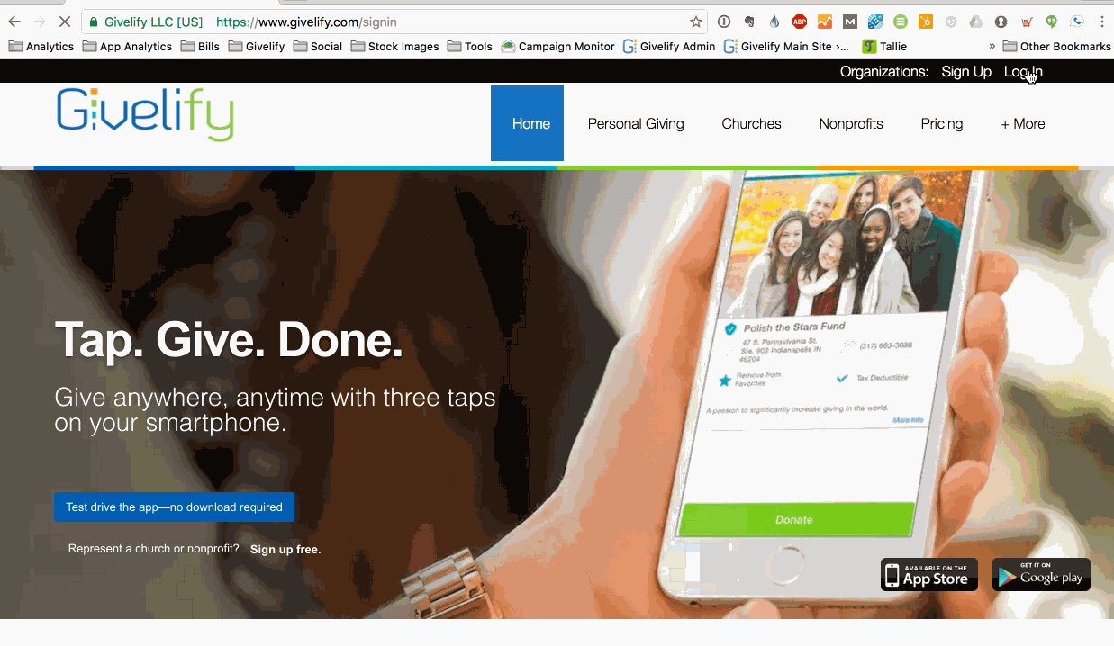 - Visit www.givelify.com on your computer and log in to your organization’s Givelify account.