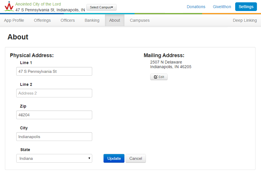Editing Your Organization’s Giving App Location
