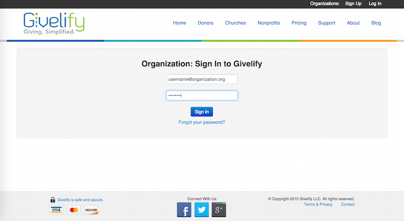 1. Access the Givelify Donation Management Dashboard by visiting https://www.givelify.com