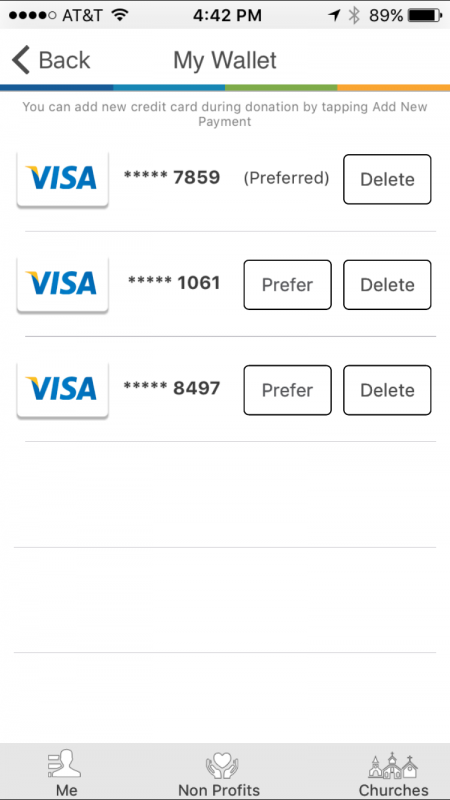 If you want the new card to be your default, go to “My Wallet.” All of the cards associated with your account will be listed. You can delete any cards you no longer wish to use by tapping “Delete” or set your preferred card by tapping “Prefer.”