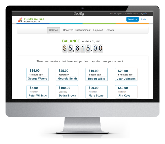 Sign in to your Givelify account from any device at any time and watch your donations arrive instantly.